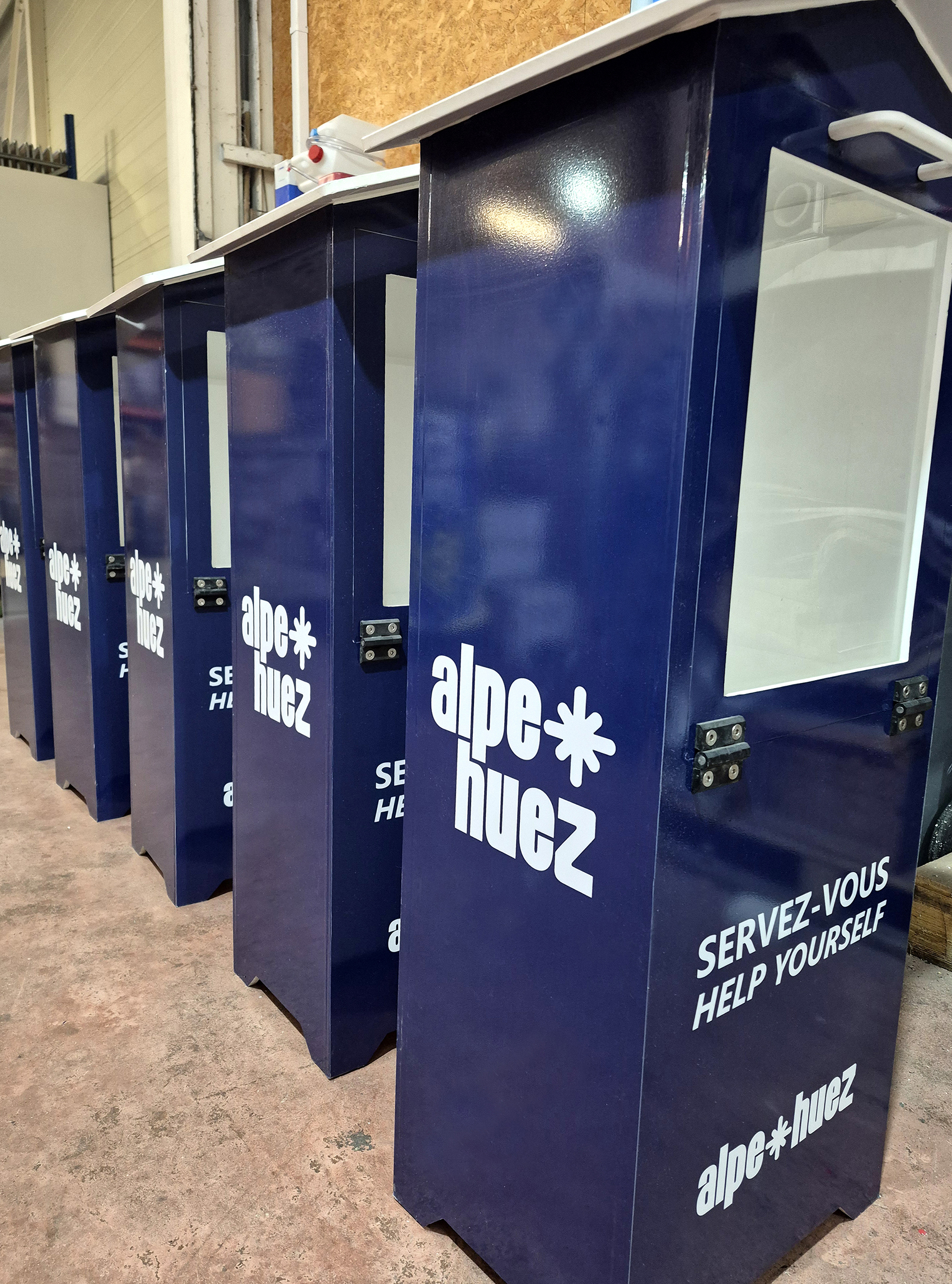 Réalisation du covering de distributeurs à journaux. Vous avez des objets ou des meubles à transformer par un nouveau décor, nous avons des solutions.