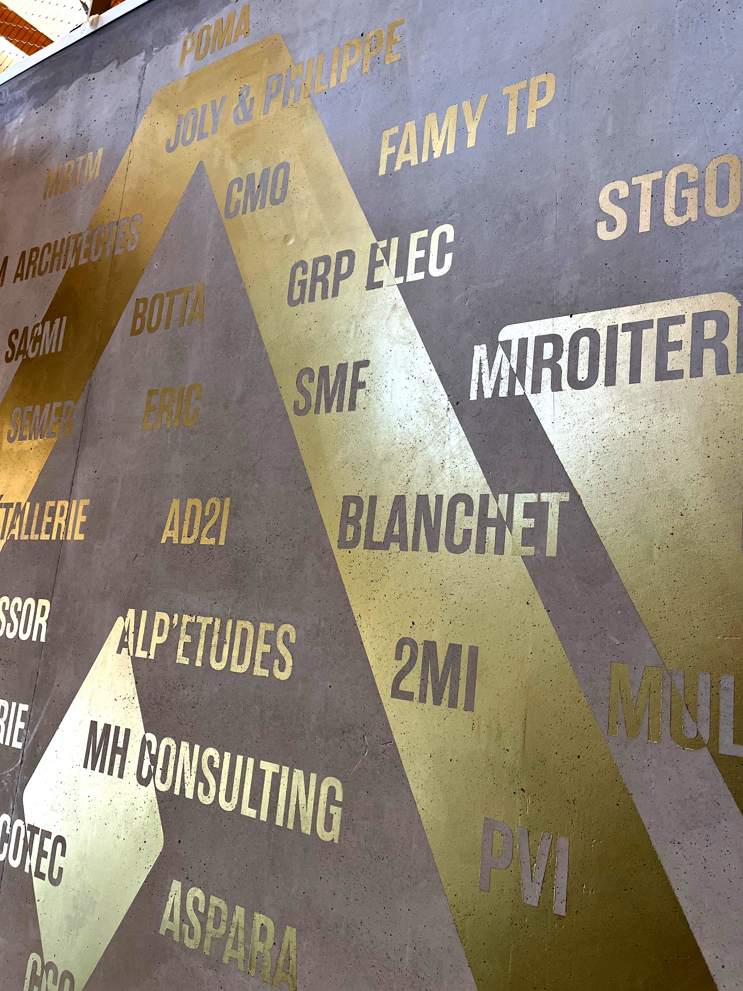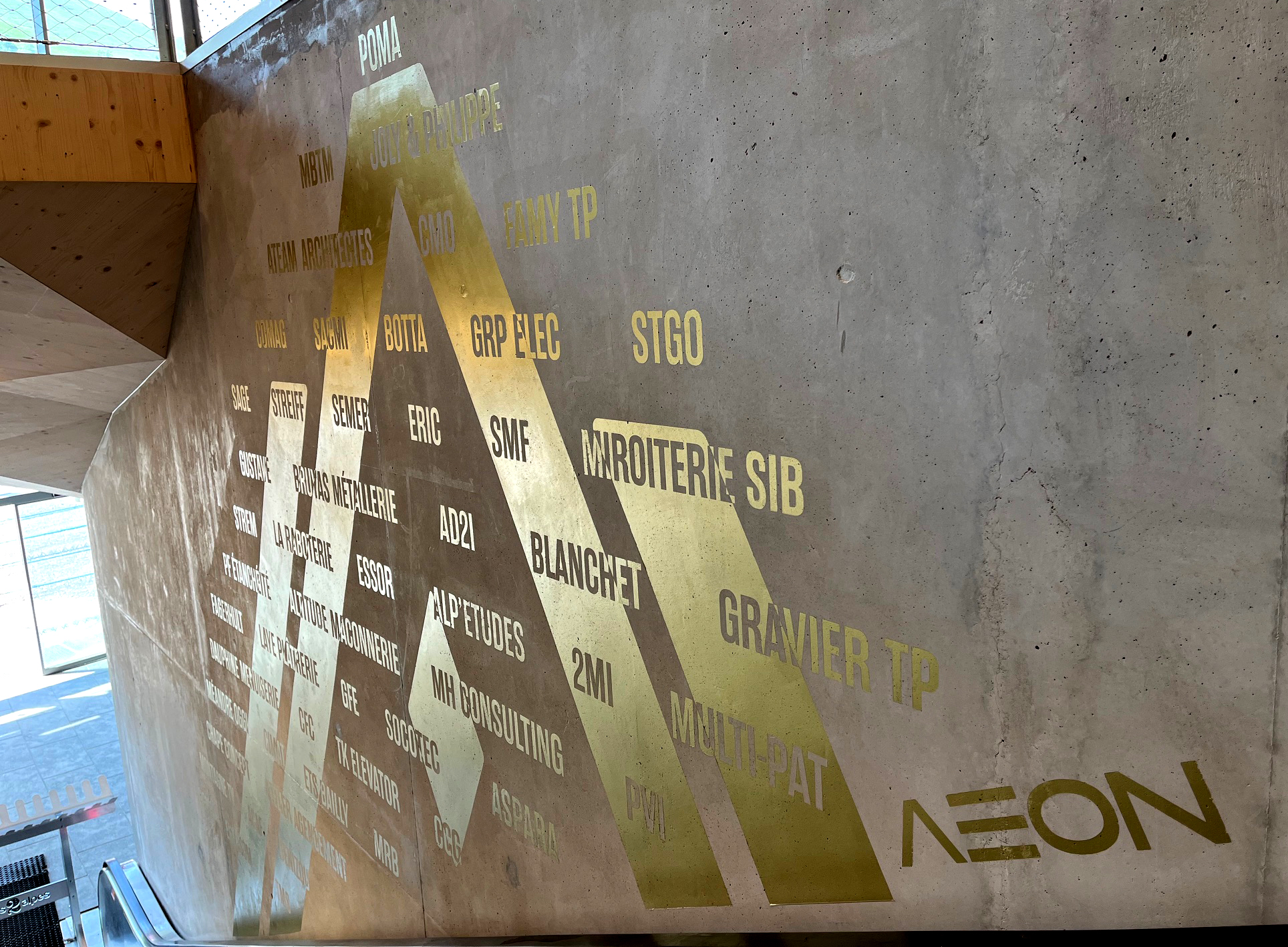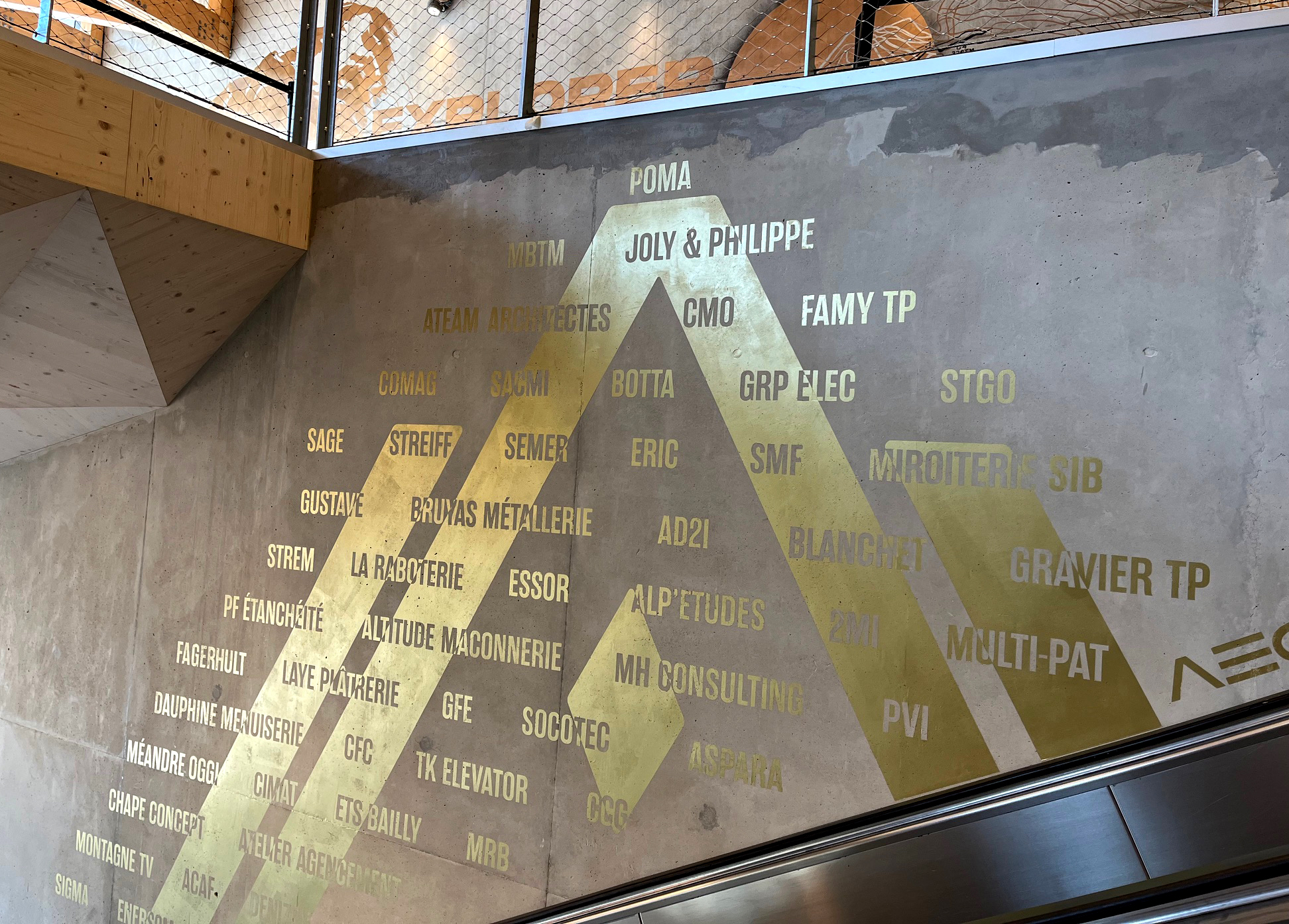 La construction du nouveau téléphérique du Jandri 3S à la station Les 2 Alpes a demandé la mobilisation de nombreuses entreprises de la région. C’est pourquoi, nous avons réalisé un décor en peinture couleur or avec PVI Peinture Vallée de l’Isère pour mettre en valeur ces entreprises qui ont contribuées à ce bel édifice. La peinture or apporte une brillance et de jolis reflets de lumière lors de la montée vers les télécabines.